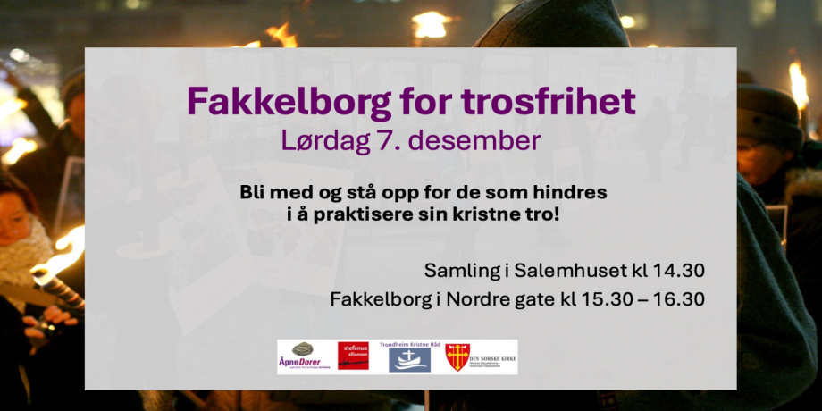 Lørdag 7. des. markerer vi vår støtte til over 350 millioner kristne som forfølges rundt om i verden. Oppmøte i Salem kl.14.30.