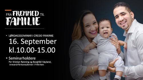 Lørdag 16. 9 inviterer vi til et spennende og utfordrende seminar i Credo: "Fra fremmed til familie", et seminar om hvordan vi møter de fremmedkulturelle blant oss15.09.2023